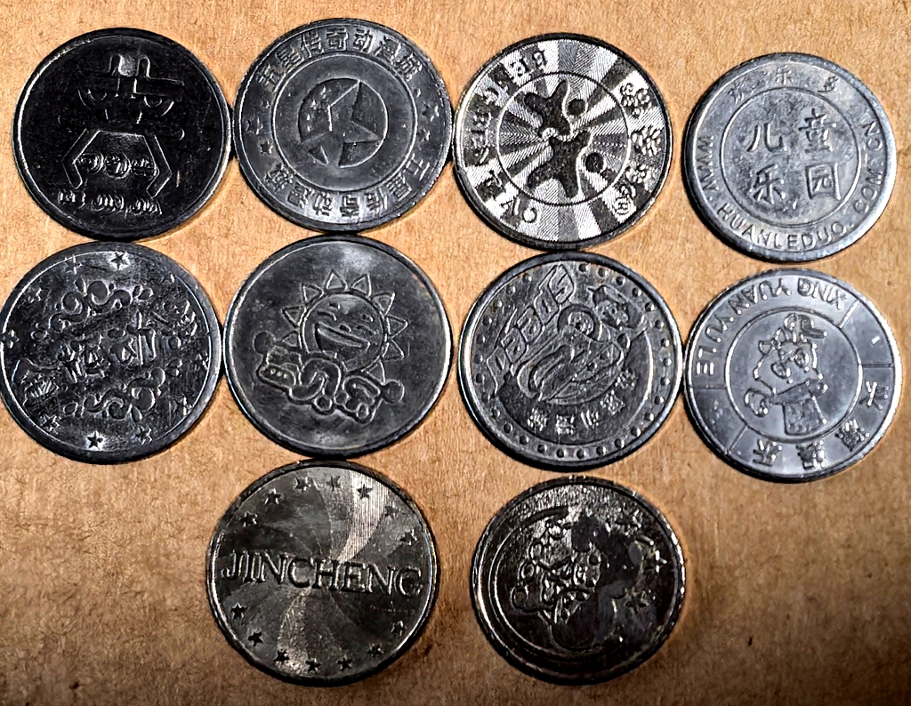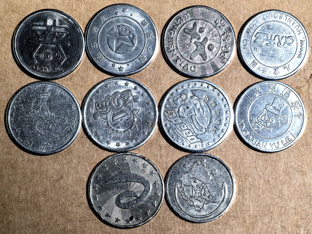 BT353, China Vintage Arcade Game Tokens 10 Pcs, 1990’s.