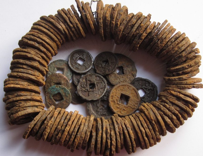 All of these coins are 1 cash and 2 cash iron coins, minted during AD 1000 to 1100 in China, by several different emperors in North Song Dynasty. Mixed coins with many varieties.