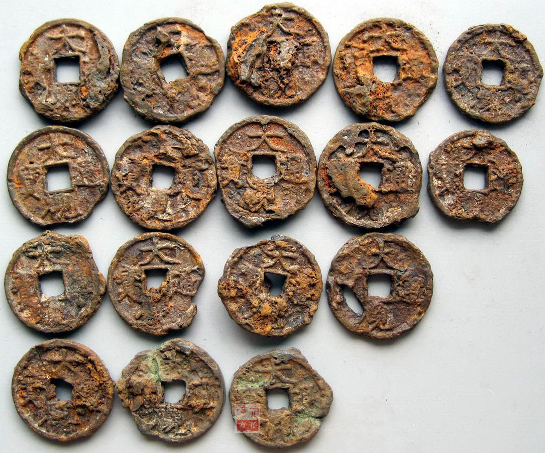 K8838, Da-Guan Tong-Bao, Large 3-Cash Coins, 17 Pcs Iron, China AD 1107-1110