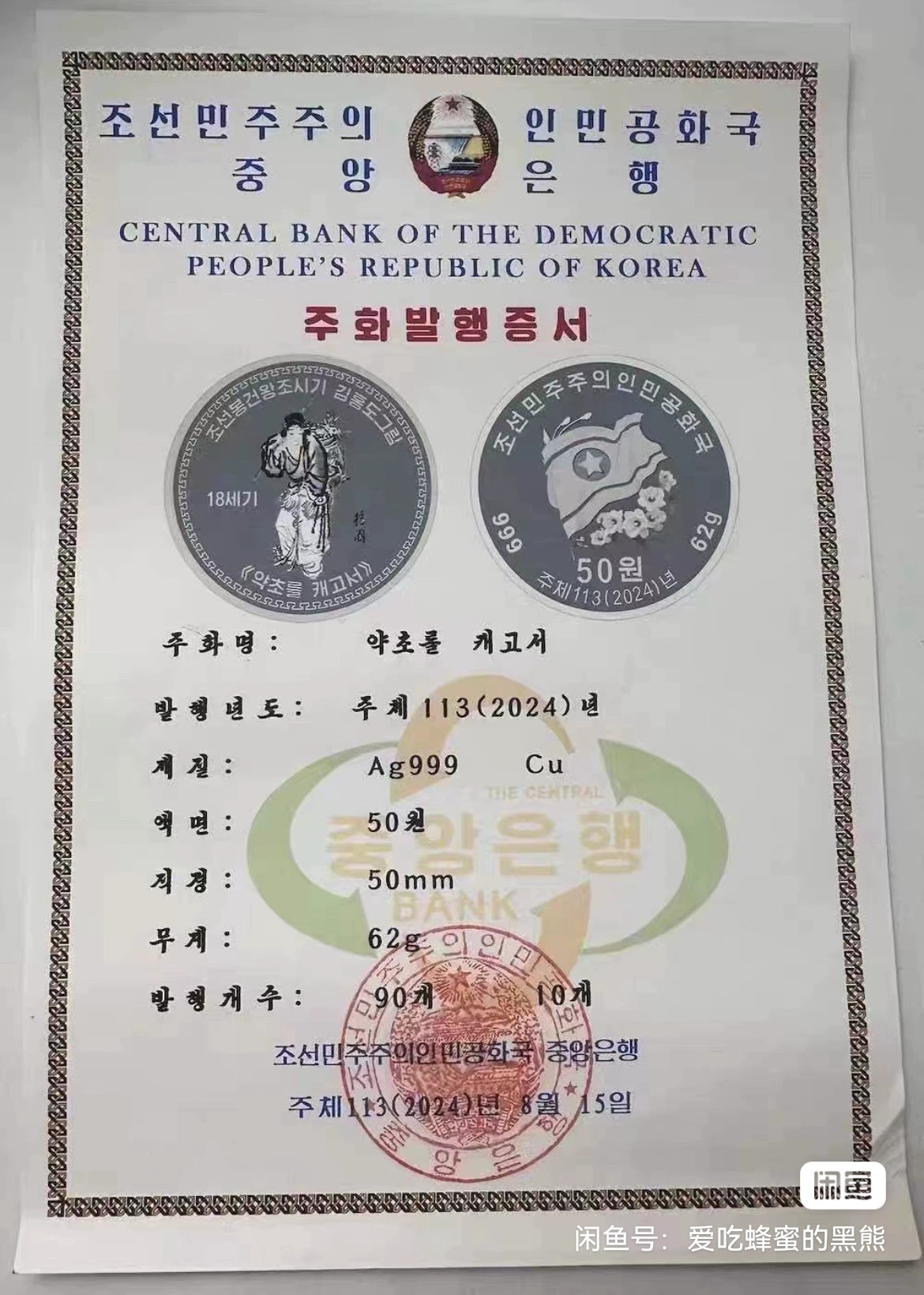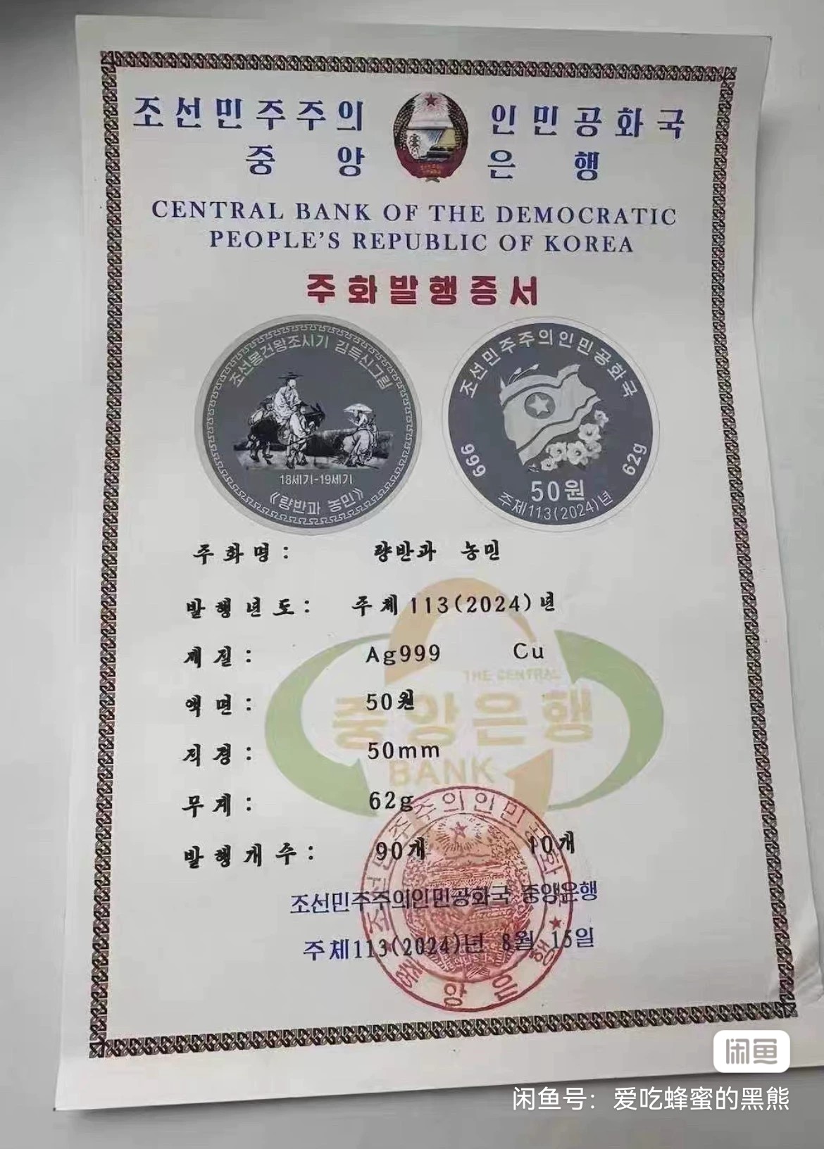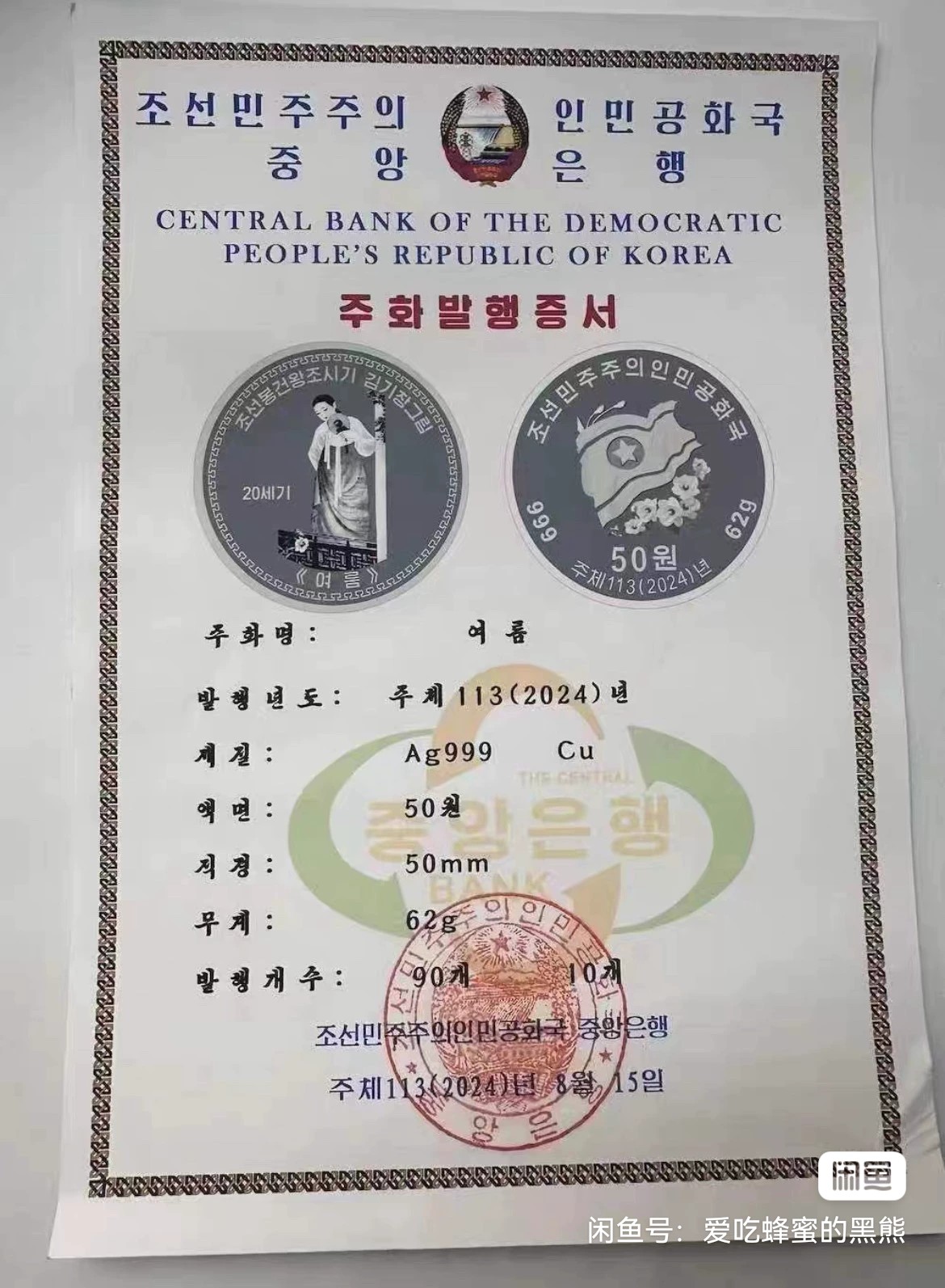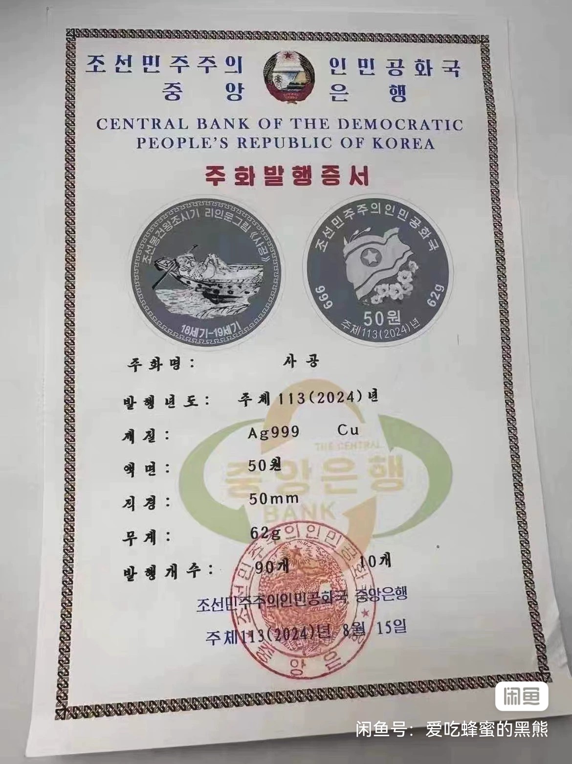 Issued by Korean in 2024. Diameter: 50 mm. Weight: 62.2 grams.