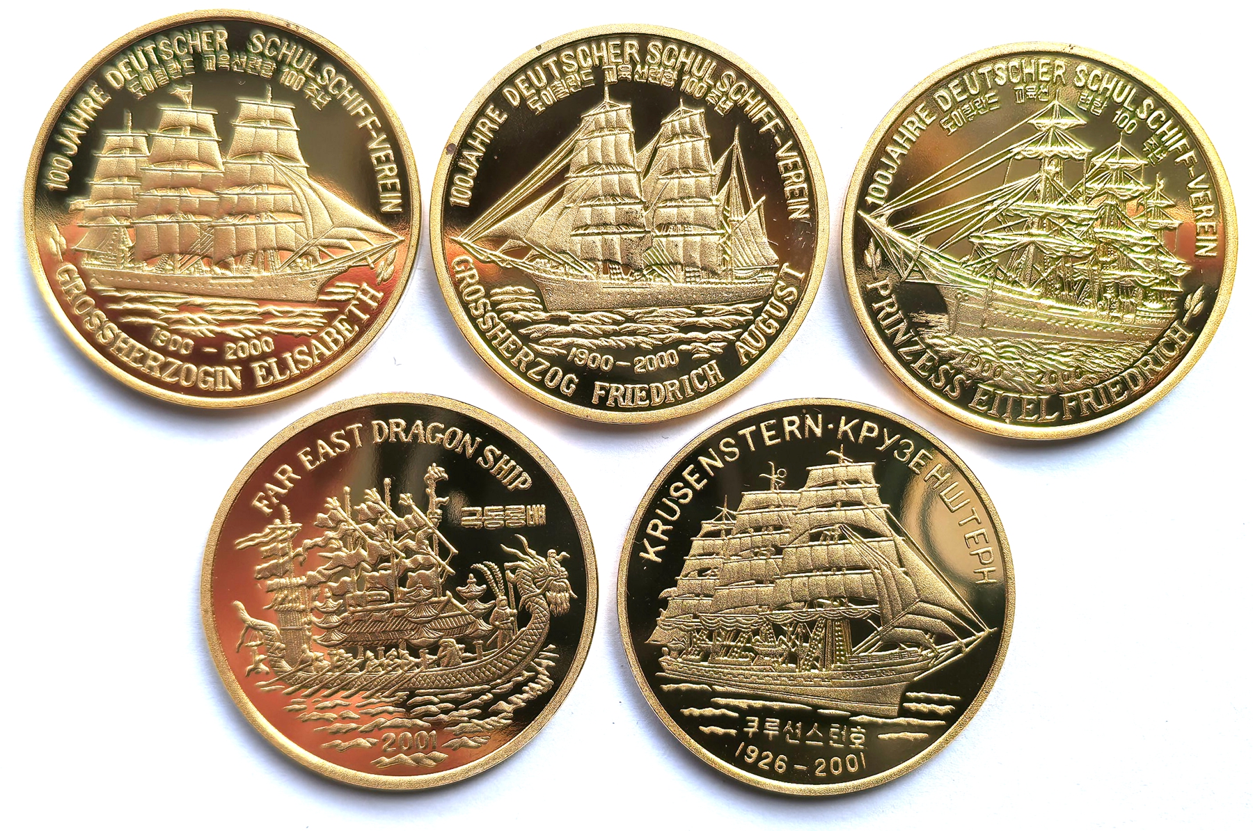 L3276, Korea “Ancient Sailing Ships” 5 Pcs Commemorative Coins