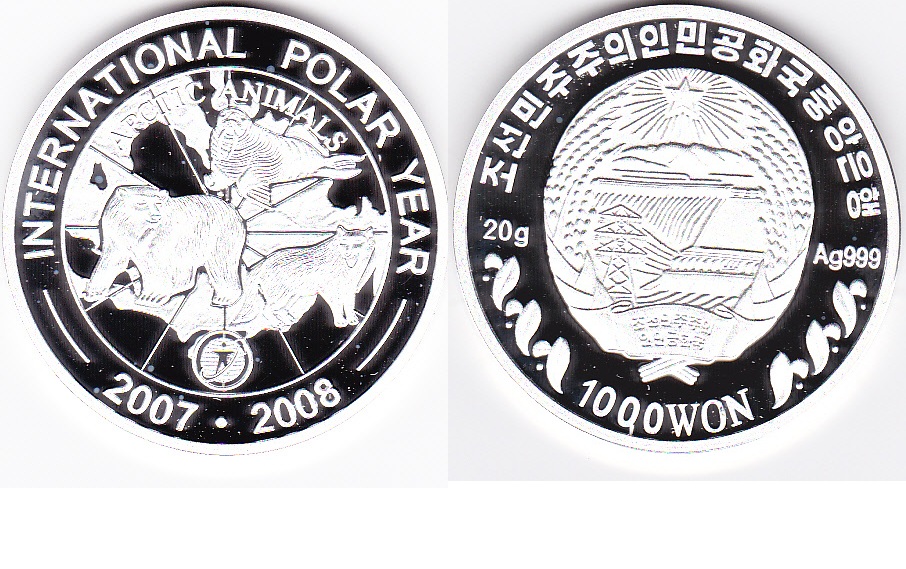 L3427, Korea “International Polar Year” Silver Coin. 2007-2008 Map.