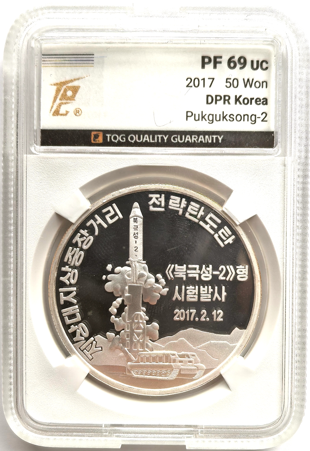 (7) 2017, “Pukguksong-2 Missile Rocket” Silver, Brass Coin.