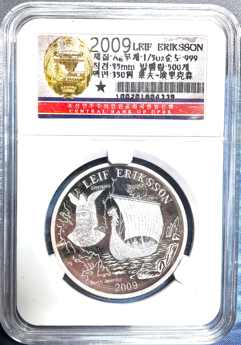 L3643, South Korea Silver Coin “Leif Eriksson, America Explorer”, 2009