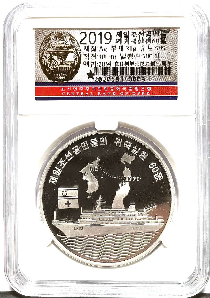 Issued in 2019, “60th Anniversary of Korean Citizens Return from Japan”. The face value of the Silver coin is 20 Won. Size: 40 mm in diameter. 1 oz.