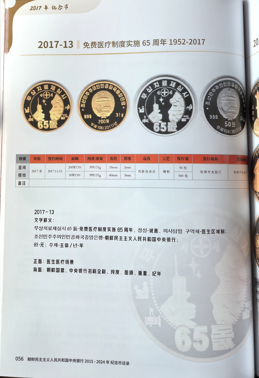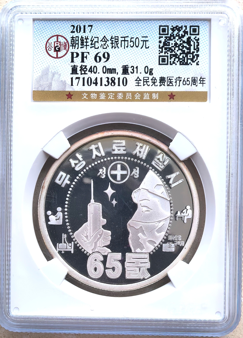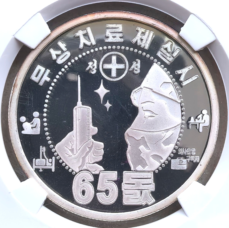 Issued in 2017, “65th Anni. Free Healthcare”. The face value of the Brass coin is 50 Won. Size: 40 mm in diameter. 1 oz.