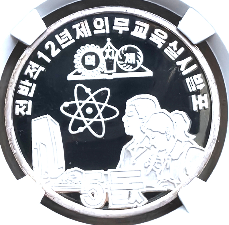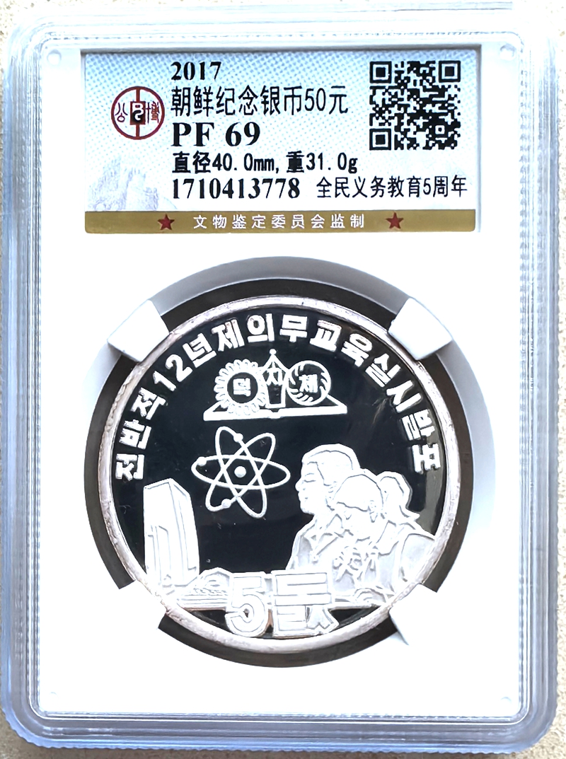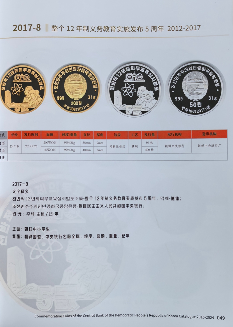 Issued in 2017, “12 Years Compulsory Education”. The face value of the Brass coin is 50 Won. Size: 40 mm in diameter. 1 oz.