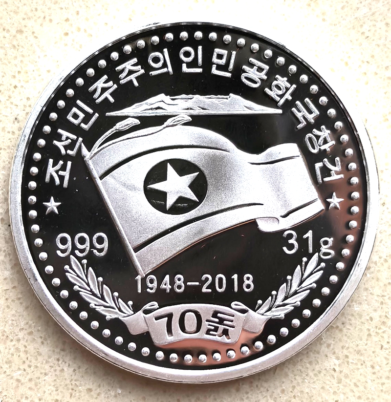 L3674, Korea Proof Silver Coins “70tn Anni of Korea D.P.Rep” 1 oz, 2018.