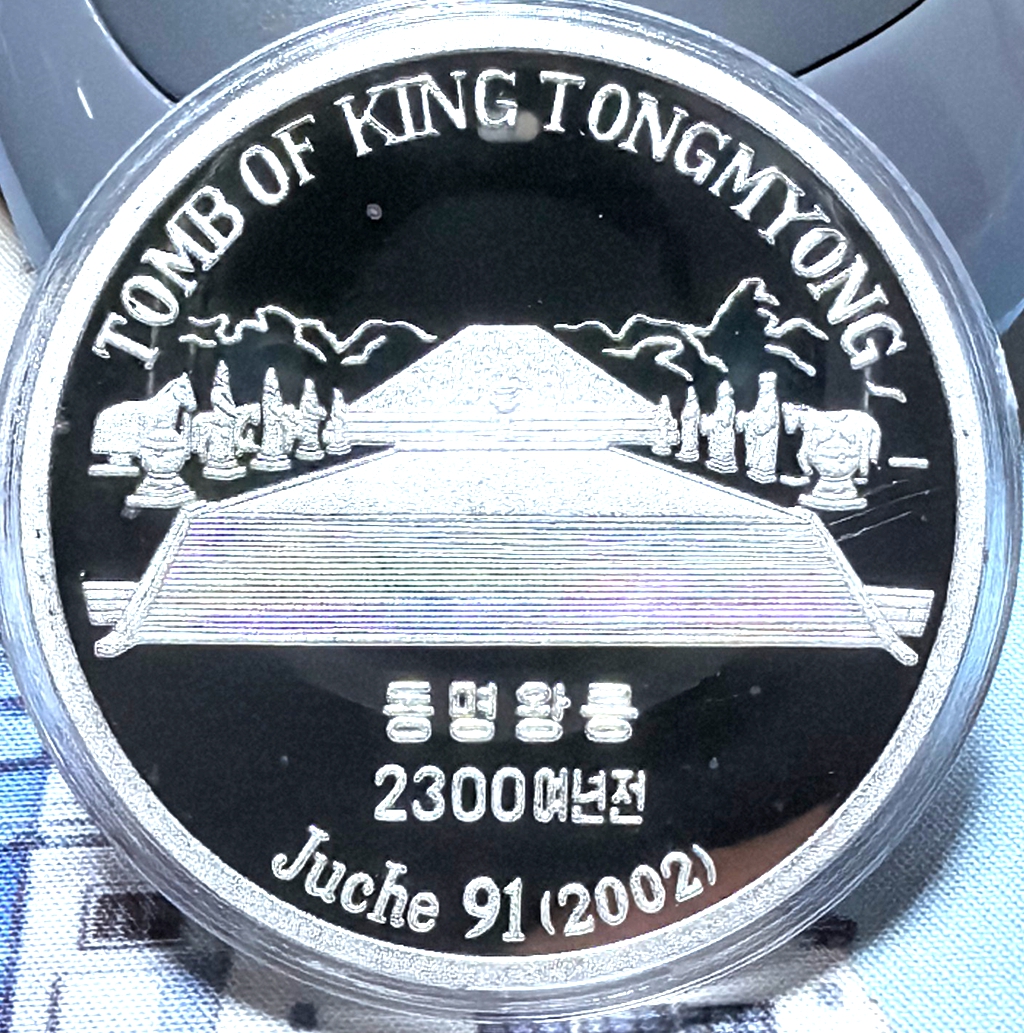 L3678, Korea Silver Coin “Tomb of King Tongmyong” 1 oz. 2002.