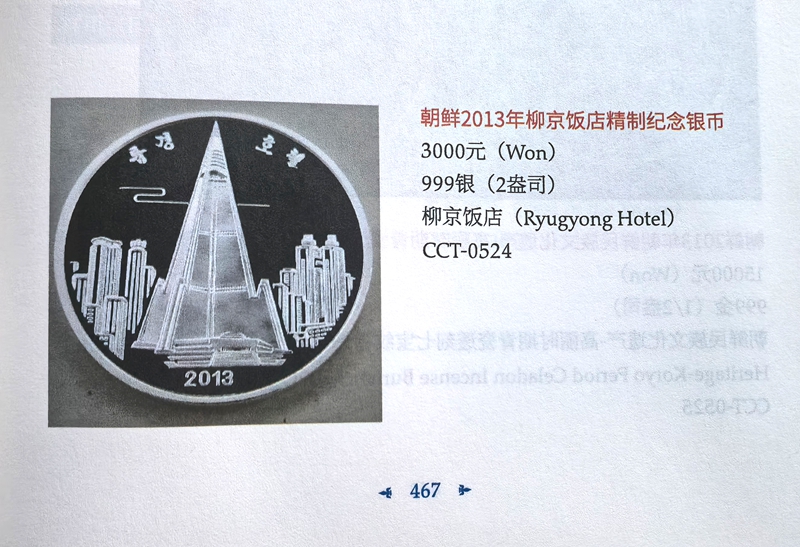 Issued by Korea in 2013. The face value is 3000 Won. The picture is “Unfinished Ryugyong Hotel”.