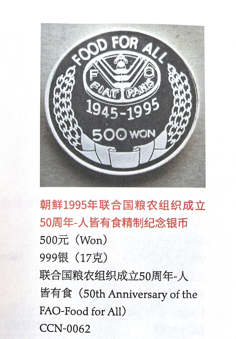 L3694, Korea Proof Silver Coin “FAO, 50th Anni, Food for All” 500 Wons, 17 grams, 1995.