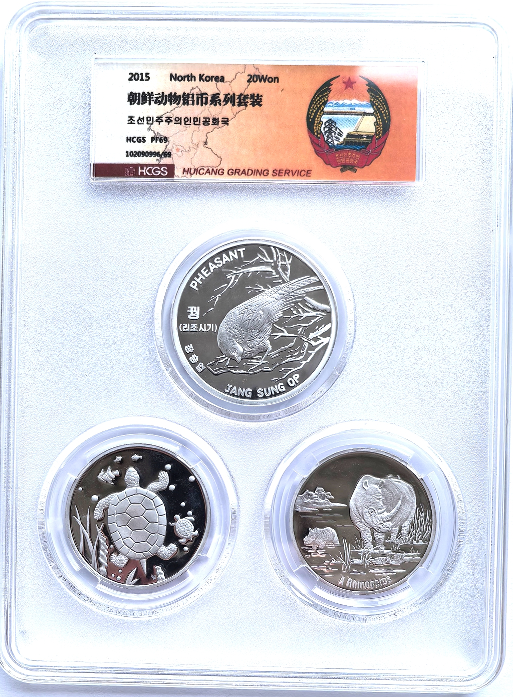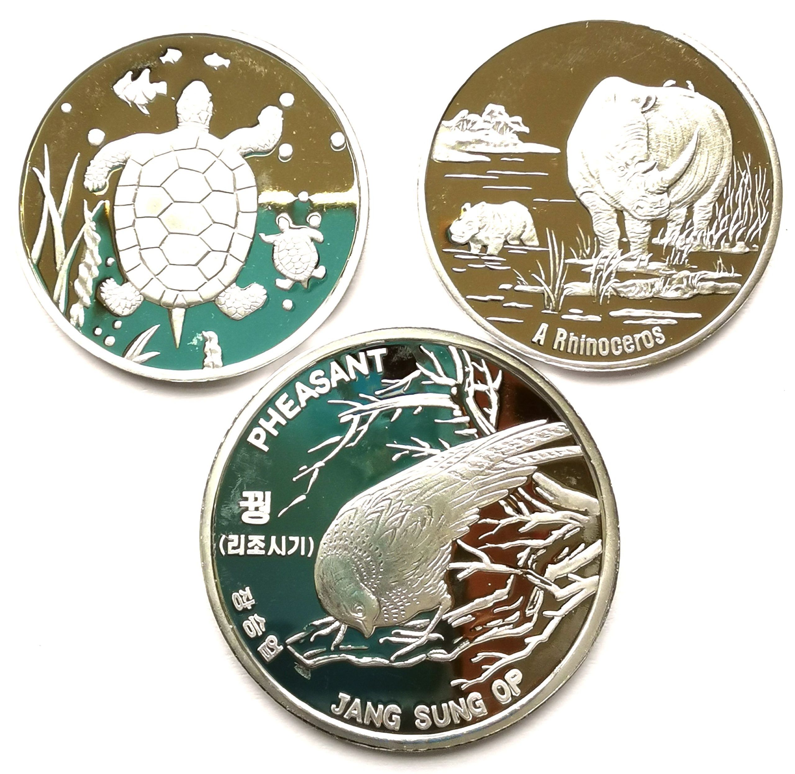 XF condition, Alu. Issued by Korean in 2015, 3 pcs in all for the Pheasant, Rhinocero, Turtle.