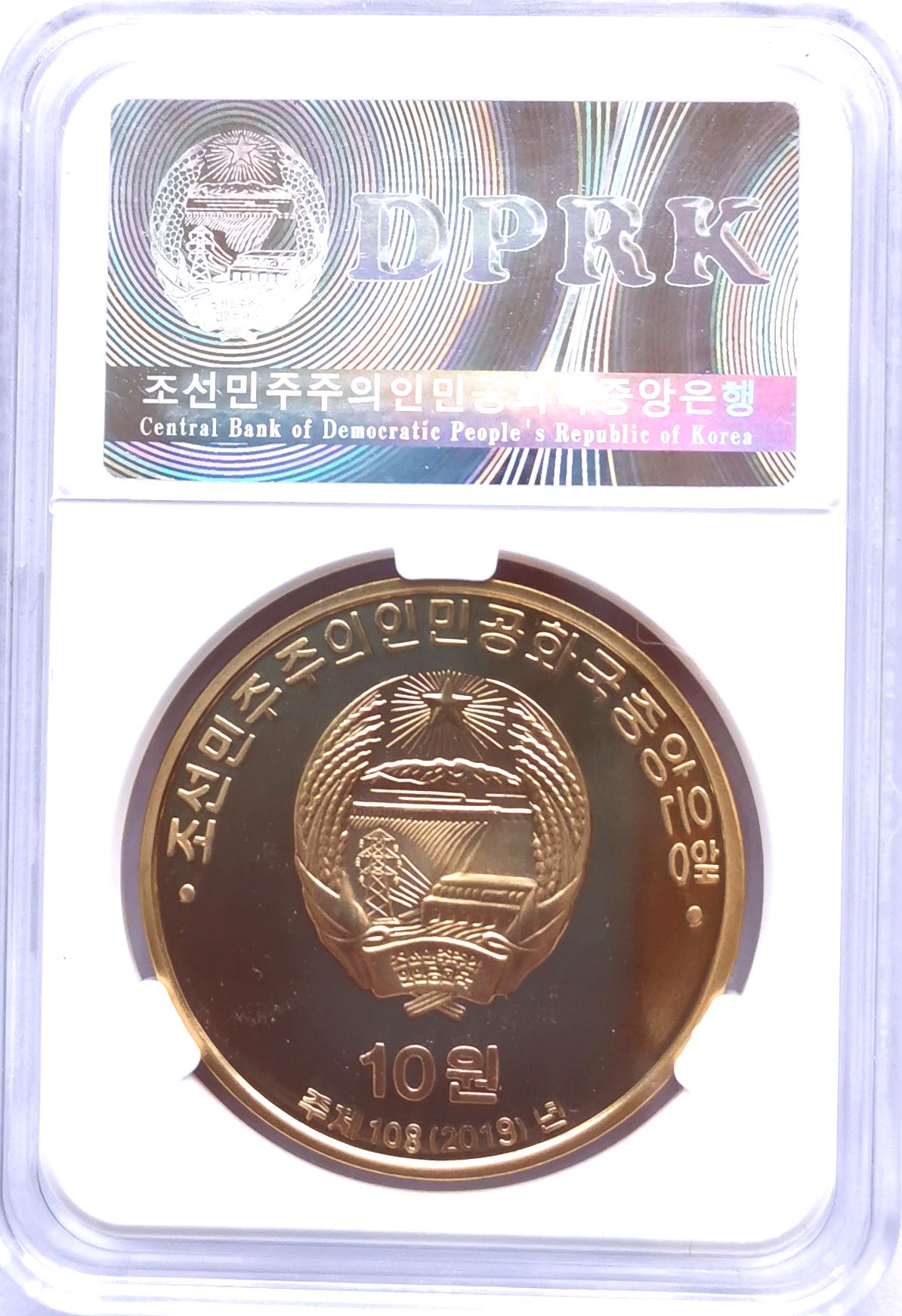 UNC condition. Brass coin. With Korean original grade box.