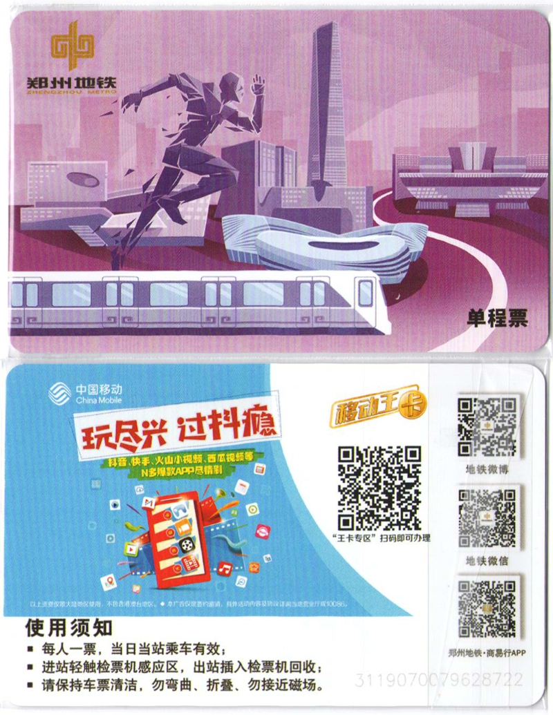 T4946, China Zhengzhou City Metro Ticket Card (Subway Ticket), 2024