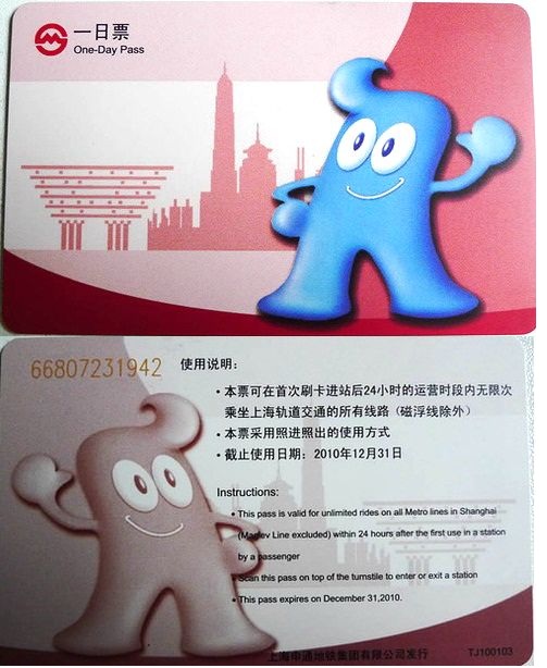 This is the first electronic metro card of Shanghai. Issued in 2010, for one-day multi use. It is valid during 24 hours. The picture is Shanghai 2010 EXPO.