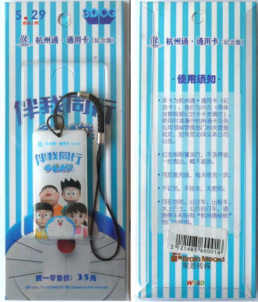 T5215, “Doraemon” China Hangzhou Commemorative Metro Card, Small-Size Ticket, 2015